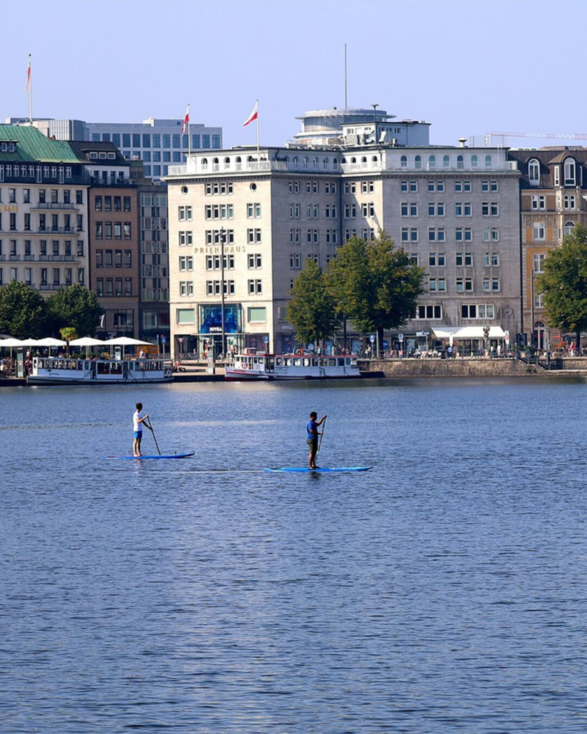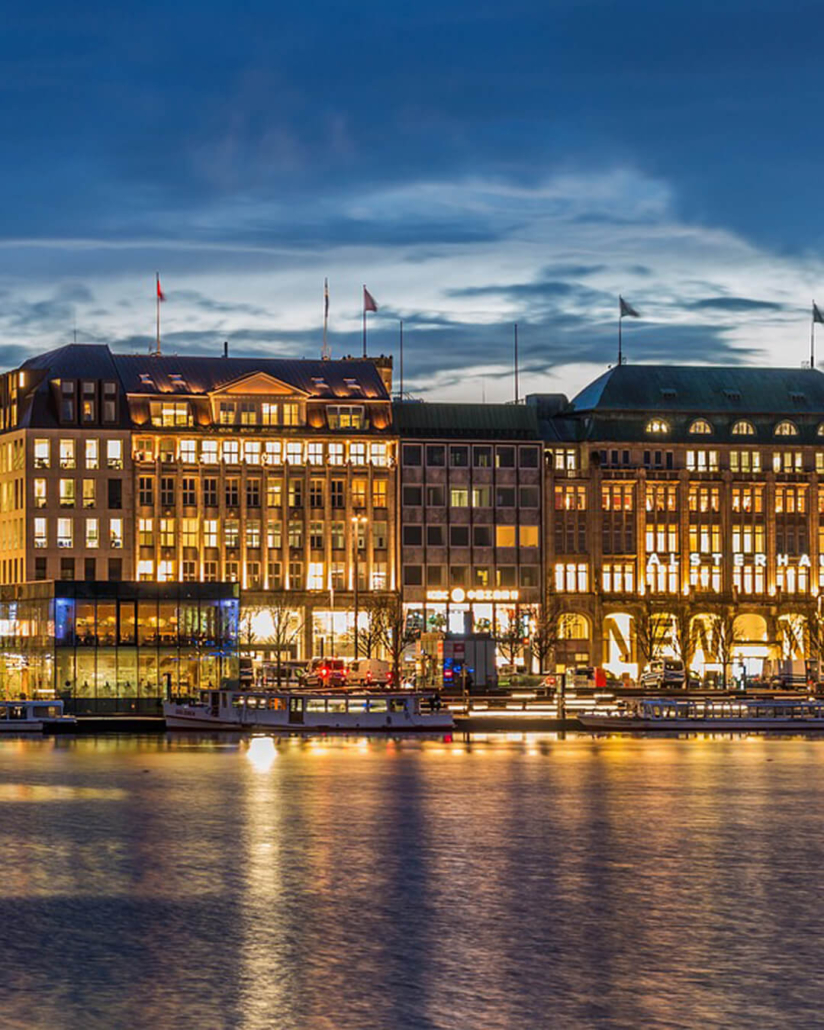Der Jungfernstieg ist Hamburgs Flaniermeile – hier treffen Shopping, Kulinarik und Architektur aufeinander. Nur wenige Schritte entfernt liegt die Außenalster, ein Ort der Ruhe und Schönheit.