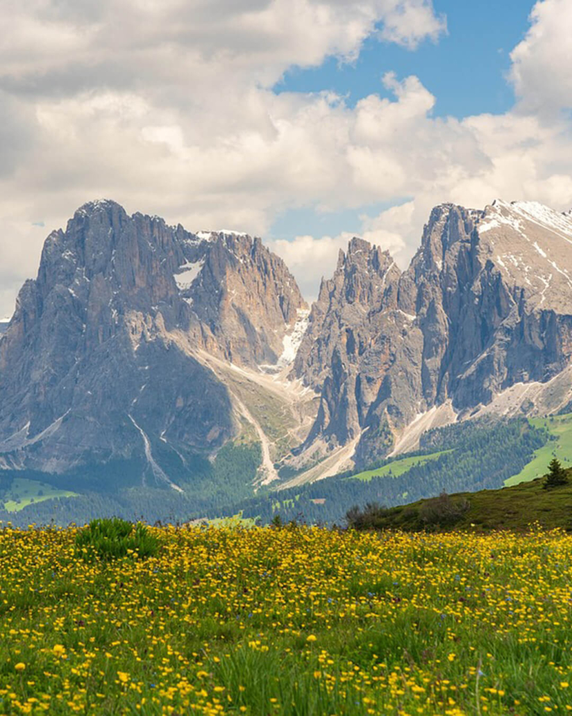 Die Kombination aus mächtigen Felswänden, weitläufigen Almflächen und charmanten Tälern wie Gröden schafft ein Naturerlebnis, das alpine Ruhe und italienischen Lebensstil perfekt vereint.