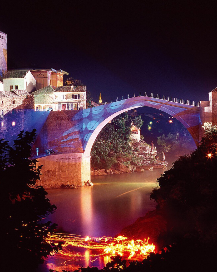 Die Alte Brücke von Mostar wurde im 16. Jahrhundert erbaut, im Krieg 1993 (Bosnien-Krieg) zerstört und später originalgetreu rekonstruiert. Heute verbindet sie wieder beide Ufer der Stadt und erinnert mit „Don’t Forget ’93“ an ihre bewegte Vergangenheit. Seit ihrer Wiedereröffnung 2004 verbindet die 30 Meter lange und 24 Meter hohe Steinbogenbrücke erneut zwei multiethnische Stadtteile Mostars und steht heute als starkes Symbol für Frieden, kulturelle Vielfalt und den Wiederaufbau der Stadt. Old Bridge Museum: Entdecke die Geschichte der Stari Most & Altstadtblick. Eintritt ca. 2,50 € (5 BAM).