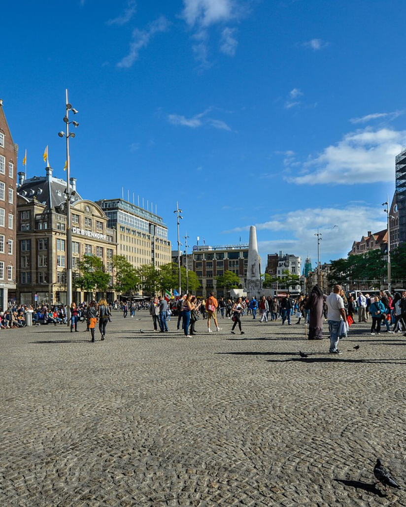 Am Dam-Platz trifft Geschichte auf pulsierendes Stadtleben – umgeben von Prachtbauten, Straßenkünstlern und eleganten Boutiquen. Nur wenige Schritte entfernt warten luxuriöse Einkaufsstraßen wie die De Bijenkorf, Kalverstraat und P.C. Hooftstraat – perfekt für stilvolles Shopping zwischen Kultur und Charme.