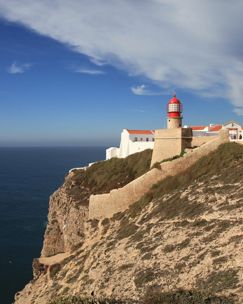 Am südwestlichsten Punkt des europäischen Festlands trifft Land auf offenen Atlantik. Steile Klippen, Wind und Weite verleihen diesem Ort eine rohe, fast archaische Atmosphäre – besonders eindrucksvoll bei Sonnenuntergang.